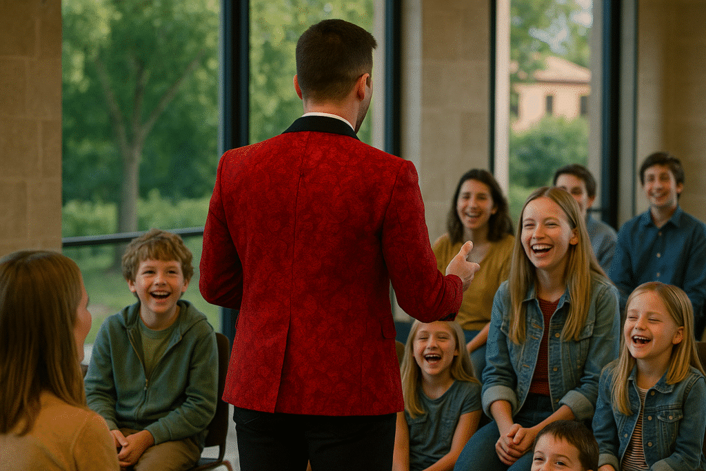 His magic is visual, direct, and participatory . Each show has a solid script, but he always leaves room for improvisation and spontaneous humor , adapting to the audience’s energy.